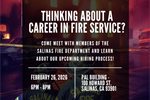 Meet and Greet/Informational Session with Salinas Fire Join members of the Salinas Fire Department for an informative and interactive evening where you’ll learn what it takes to start a career in the fire service and get a firsthand look at our upcoming hiring process.